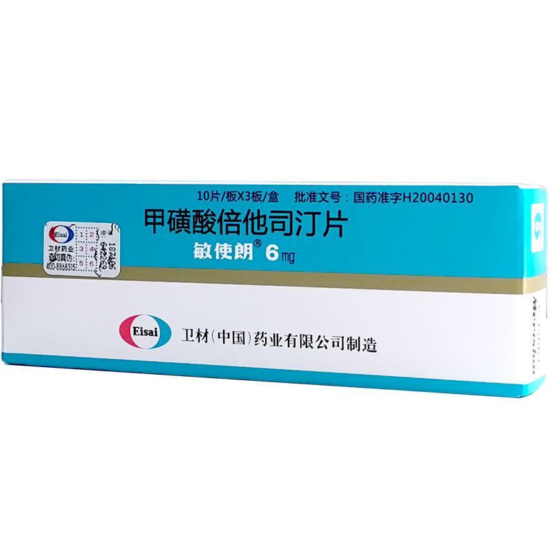 首页>全部商品>专科用药>呼吸科药>抗病毒药>敏使朗 甲磺酸倍他司汀片 6mg*30片/盒
