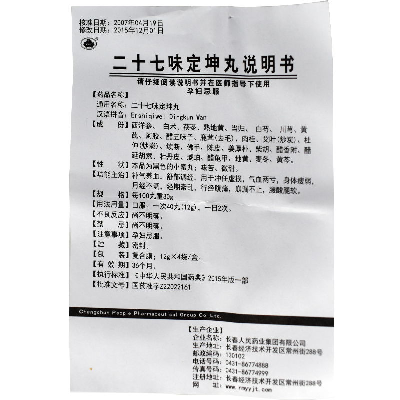 人民药业二十七味定坤丸