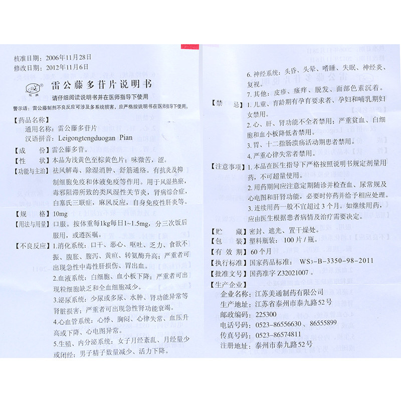 首页>全部商品>专科用药>风湿关节>风湿骨痛>双鹿雷公藤多苷片100片