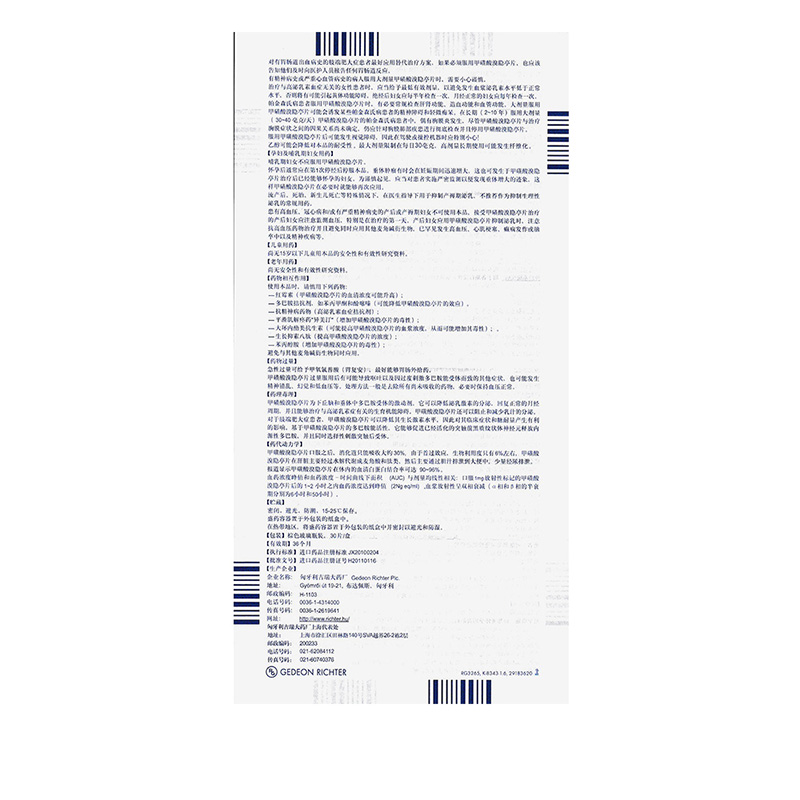 8.服用甲磺酸溴隐亭片可能发生视觉障碍,因此在驾驶或操控机器时应特别小心! 9.乙醇可能会降低对本品的耐受性。最大剂量限制在每日30毫克,高剂量长期使用可能发生纤维化。
