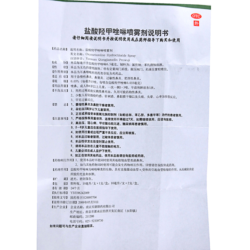 首页>全部商品>日常用药>五官用药>急慢鼻炎>常吉盐酸羟甲唑啉喷雾剂10ml