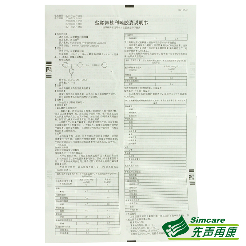西比灵盐酸氟桂利嗪胶囊5mg*20粒